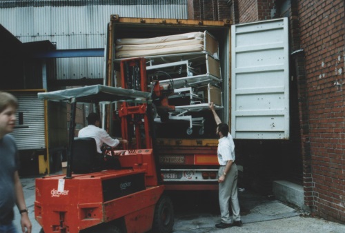 Unsere erster medizinischer Hilfstransport hatte seinen Ausgangspunkt in einer großen Fabrik. Dort lagerten in einem staubigen Raum Krankenbetten über Krankenbetten aus Edelstahl und hofften auf eine bessere Zukunft. Ein Krankenhaus in der Gegend um Wupperthal mußte einen Teil seines Bettenbestandes abbauen und hatten daher seine ausgemusterte aber denoch tadellose Ausrüstung in der alten Fabrikhalle zwischengeparkt.